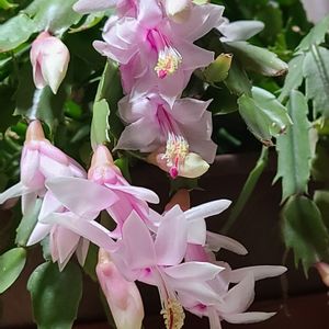 やさしいピンクの シャコバサボテン💗 4がつになったら 🪴うえかえと 🌱さしめをして かぞくを ふやしてあげましょう😊🌵🌵🌵 *⋆꒰ঌ┈┈┈┈┈┈┈┈┈໒꒱⋆* シャコバサボテン(蝦蛄葉仙人掌) 別名:クリスマスカクタス デンマークカクタス 花言葉:「美しい眺め」「ひとときの美」