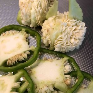 ジャンボオクラ ダビデの星というオクラを頂きました 切り口が花のように美しいのでポチッ! 丸っぽいずんぐりとした可愛い美味しいネバネバ!