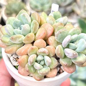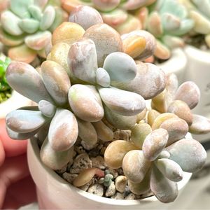 多肉植物園ナイト営業中✩.*˚ この前お迎えした『ジュノンボーイ』 安定して来ました♪ 薄らパウダーに、この肥料切れの淡い色合いのぷくぷくロゼット♪ 多肉もお菓子も グロスのゼリービーンズではなくて、マットなフローレットが好きなんですよね(*´︶`*)❤︎ 解るかな〜
