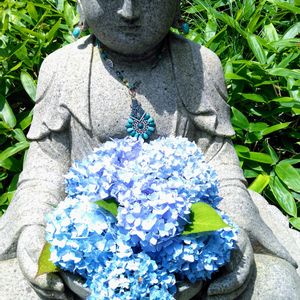 北鎌倉を訪ねて ② 明月院6/5 花想い地蔵さん、やっぱり紫陽花がお似合いです💠 明月院ブルーと呼ばれている姫紫陽花、 ブルーばかりではなく、虹色もたくさん咲いています。 素敵な色に出会える、ほほえみの空間です💗