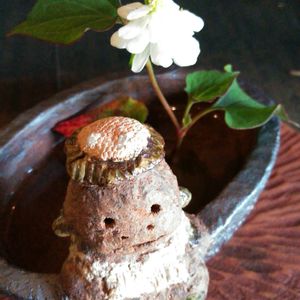 北鎌倉の古民家ミュージアムの売約済みの花器✨ 八重咲きのドクダミが活けてあります🌿