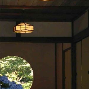 北鎌倉の古民家ミュージアムの入り口に紫陽花が吊るして活けてあります🌸🌿