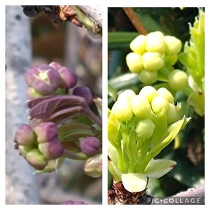 今朝の庭の様子です🌿 サンシュユは未だ開花途中です ボケ(木瓜)は2種ツボミが膨らんできました 花壇のアリッサムです 花壇のプリムラジュリアン2色です アケビは昨年強剪定をし 大鉢に 植え替えをしました 3枚葉と5枚葉を植えています あまり剪定し過ぎたので花芽は無理かなぁと思っていたので 嬉しい🥰🎶🪴