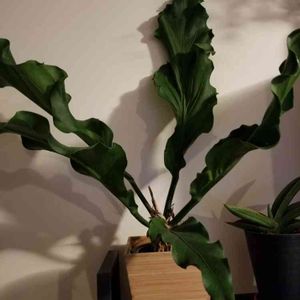 アンスリウムフーケリー、 皆さんに調べて頂きまして名前がわかりました。大きく開いた葉っぱが異国情緒あって好きです🌿