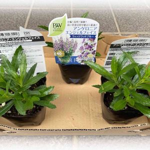 本日お迎えの花苗🪴 アンゲロニア エンジェルフェイス(PW) 一番人気のウェッジウッドブルーを3ポット (*^▽^*) 開花苗が販売されると思ってたら、かわいい苗でした(^◇^;)