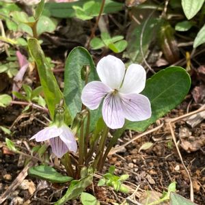 我が家では絶滅したかと思っていたスミレ (たぶんアリアケスミレ)が 一株、アーモンドの根本でひっそり咲いてました💜 嬉しい😍