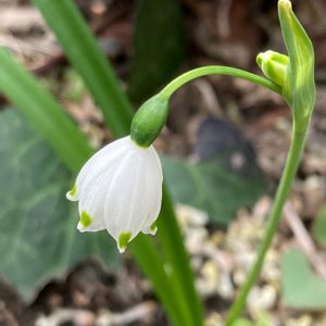 🏷今日のお花 スノーフレーク タイリンミツマタの下の 春先の球根・宿根草コーナーにて🌿 (夏には完全に葉蔭になるのでスプリングエフェメラルがいちばんピッタリなのです) 去年お隣さんから「スズランよ」と分けていただいたお花🤍 鈴蘭水仙、スノーフレークでした🤗 ウチの庭に定着した様子なので ここからどんどん増えていくと期待💕
