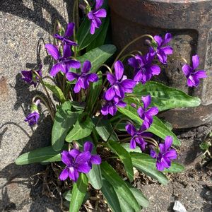 連投すみません💦 こちらは近所の片側1車線の狭いバス通り 路傍の電柱下で咲き誇るど根性スミレ💜 ここにしかいないので、 もしかしたら誰かが植えたのかも🤔 庭から逃げ出したのかも⁉️ このコはたぶん「スミレ」(日本菫)ですよね? スミレに詳しい方、是非教えてください💜 種になった頃採りに行こうと思います☺️