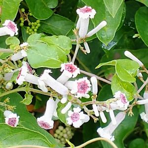 今日のお花 ヘクソカズラ(別名サオトメバナ)古名クソカズラ 可哀想な名前No.1のこの花、去年どこからともなくやってきて〜 今年はフェンス際の木々に絡まって〜はびこび中!😅