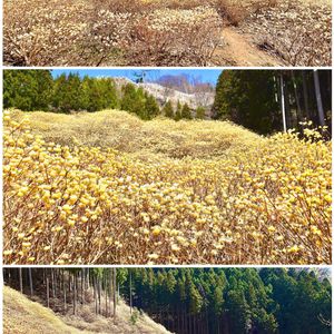 色が出にくいけど、画像を拡大してみてくださいな、黄色い雲のように見えるのが全てミツマタです😍 昨日の桜のあと、今日は帰路に前から聞いてはいたけど行ったことがなかった「屋敷山のミツマタ大群生地」に立ち寄ってみました😍 いや〜❗️ここは凄い‼️ 思わず声が出るほどの見事さでした。こんなのみたことない😳 これだけギッシリと集まってますから、香りもすごく濃くてミツマタ香水の中にいるみたいな気分。