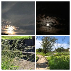 外に出て中秋の名月🌕を撮りました。 日曜日のススキの写真と🌾🌕 雲に隠れたり出たりしています☁️🌕