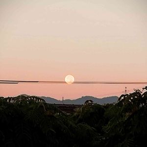 おはようございます🌕 今朝6:12の満月🌕 月が沈む少し前の姿です😅 電線が邪魔ですが勘弁してください😅