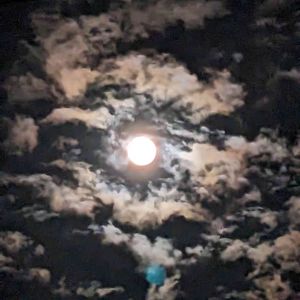 番外編 今宵は満月🌕 午後7時頃、我が家の前で撮ったお月様✨ 雲の中から現れたお月様です 私のスマホでは、これが限界 実際はもっと素敵でした😌 明日は雨☔の予報です