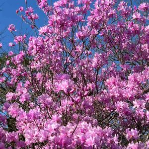 富士山麓のあちこちで、紫ツツジが咲いてきました💜 今日は青空に映えて、ピンクっぽい紫色の花が満開です とても美しい花が、少し妖艶な感じで目をひきます‼️