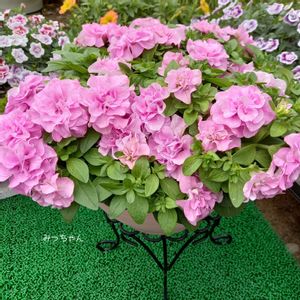 ベルチャーム エレン 花日和さんの大人気ペチュニア 這性の草姿で大きくなります。 去年は大鉢に植えたら腐ってしまったので6合鉢で様子をみてます。 花付きは抜群です!