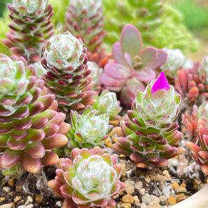 🧰 工具箱寄せ (夏型寄せ) 🧰 夏型の子たちを集めてみましたヽ(´▽`)/☀️🍉🌻🌺🌴 昨日 折れちゃった武蔵野ウチワも入れたよd('∀'*)🌵 🔹アロエ属 ··· 翡翠殿、ファイアーバード、ブレビフォリア 🔹ガステリア属 ··· オカバンゴ 🔹ポーチュラカリア属 ··· 雅楽の舞、銀杏木、ウェルデルマニー、ピンキー 🔹テフロカクタス属 ··· 武蔵野ウチワ 🔹マミラリア属 ··· ヴェチュラ フラジリス 🔹ユーフォルビア属 ··· 花キリン