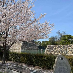 史跡高松城跡玉藻公園 1️⃣天守台からの景色 左下・鞘橋(さやばし) 海城である高松城のお堀は、海水を引いているので鯛が泳いでいます🐟 2️⃣天守台 展望デッキ 3️⃣濃いピンク色の可愛い桜のお花 「エレガンスみゆき」と買いてありました🌸 初めて見ました😊 4️⃣北の丸 月見櫓 5️⃣左上・桜御門 下・鞘橋(さやばし)