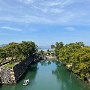 玉藻公園の天守閣跡より、瀬戸内海🌊 お堀の鯛に餌やりができます🐟