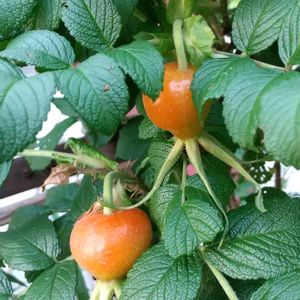 ハマナスの、実、赤くなりま始めました。 今年は、カナブンにやられないで、お願いね、🍀