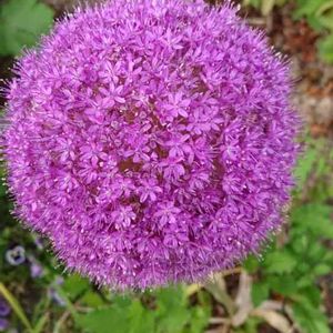 直径10㌢くらいの小さな紫の花の球体の花です。どなたか名前が分かるでしょうか?