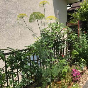 "謎の巨大植物" 突然にょきにょきとでっかく育った巨大植物‼️ 初めはオルレアかと思ってましたが、気がつけば私の背丈を越すほどに💦 全く身に覚えがない植物でしたが、たまたまインスタの投稿に似た植物を発見。 どうも、《ディル》だと判明。 そういえば、ディルなら購入した覚えがありますわ(苦笑) 購入当初はこんなに大きくなかったのに。 香草なんで大歓迎❣️ サーモンやポテトにとっても合うので、使ってみます♪︎・・*:(´∀︎`人)