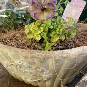 今日は雨が降り出してます☔ ①②③神戸べっぴんさん みはなだ ④『水縹(みはなだ)』 藍染の薄い色で明るい青色のこと こちらは制限なかったので 3ポットお迎え🎵 ⑤寄植え セリ フラミンゴ ヘリクリサム