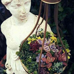 多肉植物を集めて、ハイパチリ 下の多肉は、弓形の中に上えて、あります。時々多肉を揺らして、遊びます。形態が、伝わらない写しかたで、失礼しました。