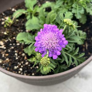 今日も寒いです🥶 ①寒空の下、スカビオサが咲いてくれました✨ ②野菜遺産プロジェクトのイタリアンパセリ。育苗ポットから植え替えてここまで育ちました! ③④野菜遺産プロジェクト 晩生小松菜と金町小蕪を2回目植えました。野菜が高いので早く育って欲しいです😅