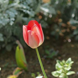チューリップ 庭に植えたチューリップが 咲き始めました✨ 午前中の少しの時間しか日が当たらない場所ですが、ほとんどの球根がつぼみをつけてくれました❀(*´▽`*)❀ 色は朱色です 光に透けて綺麗です💕