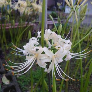 こんばんは😄 小雨降る中☔ 白い彼岸花咲き始めましたよ🎆