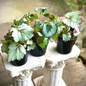 レックスベゴニア☘️こんなお値段で⁉️と言うくらい安かったのでウズモミジ2つとエスカルゴ1つ❇️GET‼️寄せ植えに使いたかったけどタグには🏷室内の明るい所と書いてある🌀🤔お外はダメですか⁉️