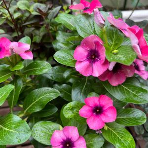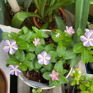 ビンカ モネアンティーク 2回目の登場です🌸 台風の雨風から避難させてパチリ! とても綺麗に沢山咲いています💕