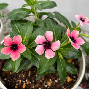 北島園芸さんのビンカ(ニチニチソウ) 💗メルモ💗 優しいピンクとホワイトのフリフリ♡⃛もうアイドル級ビンカです❣️この優しいピンクにライムグリーンが入るパステルって子もいた😍やっぱお連れすれば良かったな〜 💚サマーミント💚 花弁に淡いグリーンのグラデーションが入り、緩やかなフリフリです໒꒱·̩͙ 🩷サマーミント レッドアイ🩷 花弁に淡いグリーンのグラデーションが入り、中心が赤目なのが特徴です❣️こちらもゆるっとフリフリ໒꒱·̩͙ 2年前に北島園芸さんの日々草に出会ってから、毎年(と言っても3年目)お迎えするのが楽しみなお花です♪( ˶ᵔᵕᵔ˶و)و " アンティーク系のモネシリーズも魅力的なんですが、またしてもかわいい系をchoiceしてしまいました💖 今年は八重咲きビンカ、ミラシリーズも出ているそうで、数が少ないらしくレアだとか!!日々草の進化が止まりませんね💓💓 No Vinca No Summer❣️ …で、3苗お迎えして+PWヘリオトロープ ブライドパール+挿し芽のユーフォルビアダイアモンドスノーを寄せ植えしました🪴