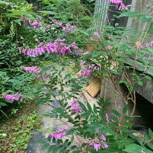 ひっそりと… ヒマラヤユキノシタの葉っぱの間から 現れました 地味だけど、グリーンの中に パープルが映えます ※ sanpoさん、チョウサンさん お名前 教えていただき、ありがとう ございます♡