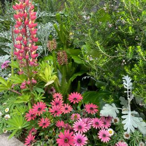 🍀オステオペルマム等 寄せ植え🍀 一日お疲れ様です☁️☔️🌪 久しぶりにN Sビル🏢 に行きました✨💖 中庭の寄せ植え 見ながお昼を食べました 🍱✨💗🎶