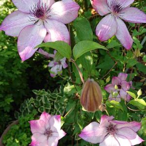 クレマチス、台風🌀に負けず 数増えて咲いてくれてました ( ꈍᴗꈍ)✌💕 偉い子(*˘︶˘*).。*♡
