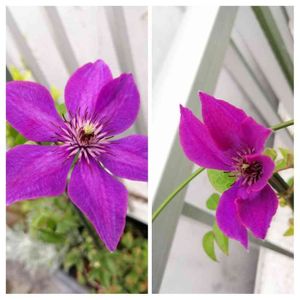 おはよう~(*’ー’*)ノございます🌀(・_・?) あれ~、剪定したはずなのに濃くて可愛いクレマチスさんが咲いてました😁✌️2つも…… やったねぇ~🤗