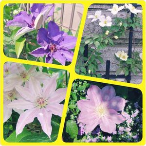 おはようございます。クレマチスは、前回までのpicで、第三走者まで、バトンタッチしていましたが、ここのところの暖かさで一気に咲き進みました。右上より時計回りに 第四 モンタナ 第五 自然交配のこぼれ 種みたいです。 第六 ミス・トーキョー 第七 ザ・プレジデント