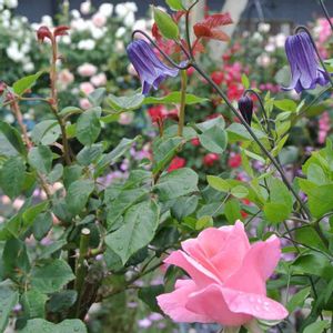こんにちは😃。 ホラ ほら ここよ… 上を見て 私はココよ。 最後のクレマチス1輪……
