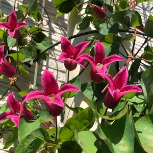 可哀想な姿で売れ残ってた クレマチス 200円で買いました😊 種類はわからないのですが すっかりもりもり☺️