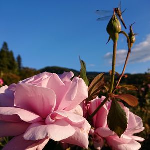 山形県村山市『東沢バラ公園』🎶🚗💨🎶 10月『川西ダリヤ園』の帰りに立ち寄りました🥰 既にシーズンオフで冬囲い作業も始まっていましたが📸や🐕️散歩の方々もいらっしゃいました😃🎶 とても広いバラ公園で来春の訪問先に決定です👍⤴️💓 ①💗お名前不明のバラと蕾に止まるトンボ ②🧡アンバー クイーン ③❤️村山市オリジナルバラ むらやま ④💗羽衣 ⑤❤️🤍ジュビレ デュ プリンス ドゥ モナコ