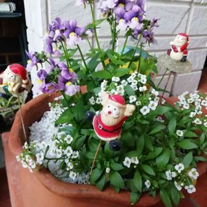 先日作った寄せ植え ネメシア、スィートアリッサム 黄色の🌷球根3個植え込みました。ミニサンタ🎅さんかわいい💞
