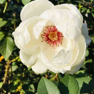 薔薇(ユキサン) とても綺麗な純白の花びらに、花芯は、綺麗な赤で、しばらく、見とれてしまいました。☺️🥰🌿2020.11