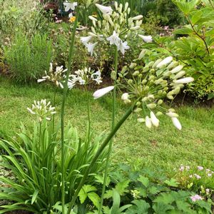 心配だった☔️も朝には、小降りになり昼頃には☀️がやっと...☺️ 『アガパンサス』3年前に見切り品の球根を購入、やっと咲きました☺️ 花茎が3本も出て喜んでいたものの...❓❓ 蕾が膨らむにつれて❓❓ ブルーなはずなのに⁉️ パッケージは、既に無くしてしまったけど確かにブルーの花の写真でした。 白花は、側に植えてあった矮性種が去年も咲いて👀てたので今年は、此処にブルーの背高が咲くってワクワク☺️ ちょっとだけ😞だけど見切り品が、年数は経ったけど、綺麗に咲いたので、とりあえず感謝かな☺️ 又、ブルーを側に植えます☺️