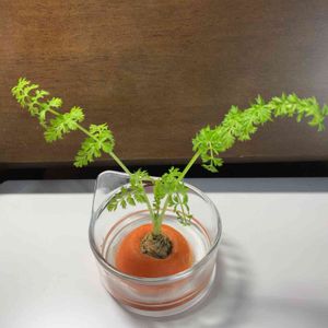 10日位前から、人参🥕の、切れ端の水栽培をはじめました。 土に植えて、花まで、楽しめたらいいなぁと思っています。☺️❣️