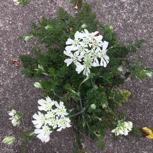 オルレアです。 家の色々な所で咲いています。 車庫の前のコンクリートの割れ目にも咲いています。車に惹かれる前に撮りました。