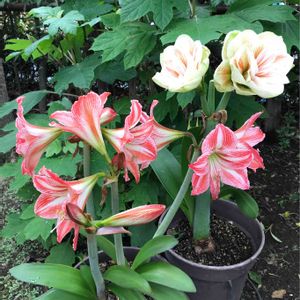 アマリリスが咲き揃いました。下の方から蕾も出てきました。楽しみ。🥰👩🏻🌾