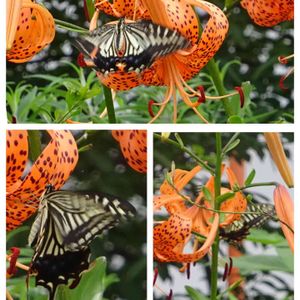 おはようございます ナミアゲハ(並揚羽)とコオニユリ(小鬼百合) よく見かけるけど、撮れたことがなかったので、嬉しい😆 メモ ナミアゲハ(並揚羽) もっともなじみ深いチョウのひとつ。都会の真ん中から山地まで、様々な環境で見ることができる。 単にアゲハ またはアゲハチョウとも呼ばれる 小学校および中学校の理科では、本種は「アゲハ」としている。Wikipediaより
