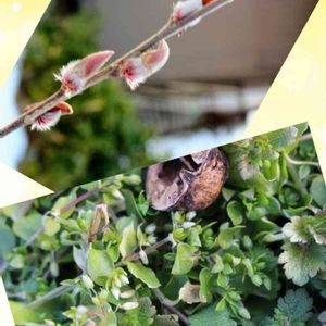 来てたんだね・・・春 雪解けの地面からは、オオイヌノフグリとハコベ ピンクの猫柳は、もうひと息