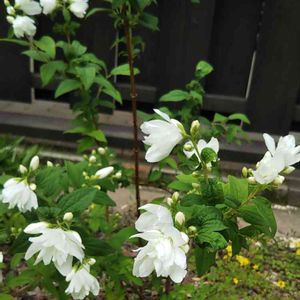 バイカウツギ、だったかなぁ? シロバナヤエウツギかも。
